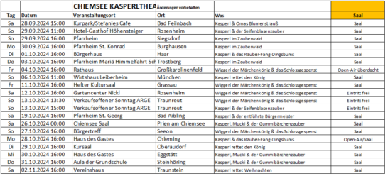 In diesem Jahr steht die Kasperltour ganz im Zeichen von Abenteuer und Gemeinschaft. Die Aufführungen sind nicht nur unterhaltsam, sondern auch lehrreich. Der Bayrische Kasperl und seine Freunde bringen den Kindern wichtige Werte wie Freundschaft, Mut und Zusammenhalt näher – alles verpackt in humorvolle Geschichten, die zum Mitlachen und Mitfiebern einladen. Und nach jeder Vorstellung gibt es für die kleinen Zuschauer leckere Gummibärchen als süße Belohnung! Dazu lädt der Kasperl zu einem kostenlosen Selfie ein und auch die eine oder andere „Backstage-Führung“ hinter die Kulissen des Chiemsee Kasperltheater soll es schon gegeben haben.