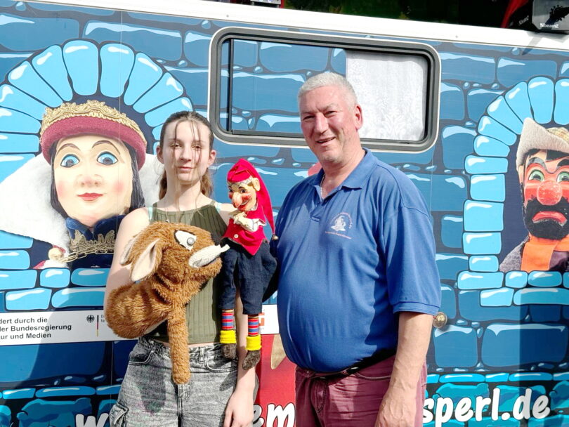 Bild 2: Die 14-jährige Bernauer Schülerin Denise Mikat unterstützt ihren Papa Stephan beim Chiemsee Kasperltheater.