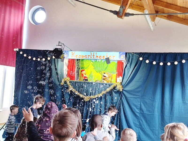 Unterstützt wird Stephan Mikat dabei von seiner mittlerweile 14-jährigen Tochter Denise. Sie darf immer selbst entscheiden, ob sie als Ideengeberin und „Chef-Kritikerin“ im Zuschauerraum sitzt, oder selbst kleinere Rollen übernimmt. Sicherlich eine logistische Herausforderung für Papa Stephan, aber er ist der Meinung „mein Kind darf selbst entscheiden, ob sie mitspielen oder zuschauen will, schließlich heißt es ja Kasperltheater spielen“. Stephan Mikat ist wichtig, dass die Aufführungen authentisch sind und in die Region passen. „Bei uns spricht der Kasperl bairisch. Schließlich wohne ich im Chiemgau und bin dort aufgewachsen und spreche auch so, wie mir der Schnabel gewachsen ist. Bereits Tradition beim Chiemsee-Kasperl ist die süße Überraschung, die die Kinder am Ende der Vorstellung bekommen. Natürlich dürfen Seifenblasen und ein künstlicher Schneesturm nicht fehlen. Und der Kasperl steht auch für Selfies mit den Kleinen zur Verfügung.