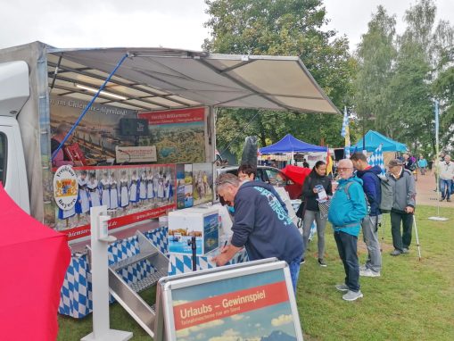 Beim “Bunten September” präsentierte sich der Chiemgauer Urlaubstruck unter der Leitung von Wolfgang Bude in Lübben. Dabei erfreute sich Organisator Wolfgang Bude eines starken Besuchs und eines großen Interesses an den Angeboten aus der Chiemsee-Alpenland-Region mit den Worten: “Im Spreewald sind wir schon Stammgast, heuer bekam wir hübschen Besuch der Lausitzer Oldstyle Company unter der Leitung von Gisela Liebsch” . Mit dabei war im Spreewald auch der “Musiker-Schorsch” aus Eggstätt, zwischen den Werbestand-Stunden gönnten sich er und Wolfgang Bude ein Kahnfahrt, die typisch für einen Spreewald-Urlaub ist.