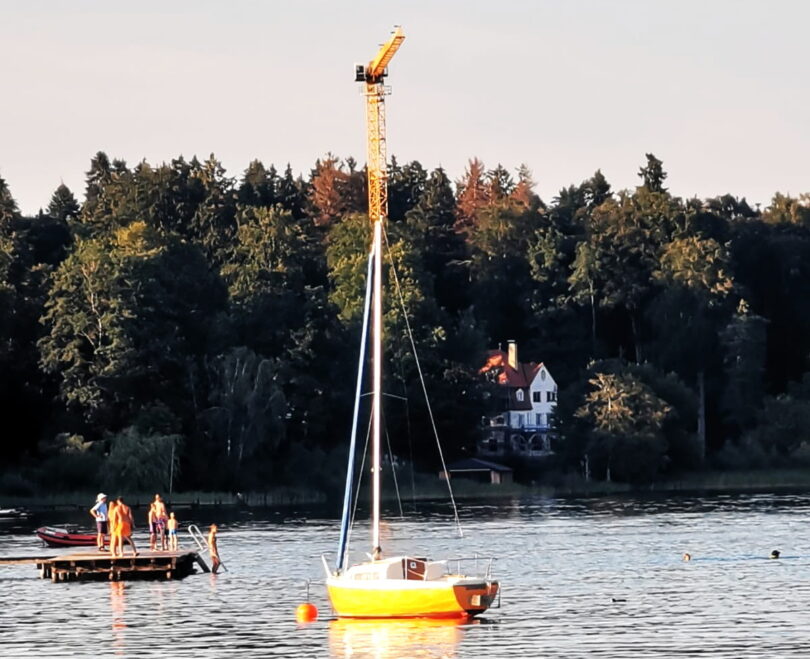 Eine besonders gelungene Aufnahme gelang unserem Fotografen in Gstadt mit einem Boot, das einen Kran-Aufbau vermittelt – die Position und die Sichtweise machen es!