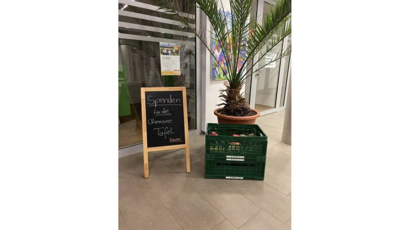 Die Abgabe von Spenden für die Chiemseer Tafel ist jetzt auch im Rathaus in Bernau am Chiemsee möglich. Noch originalverpackte und haltbare Lebensmittel sowie Hygieneartikel können zu den Öffnungszeiten des Rathauses in die Körbe gelegt werden.