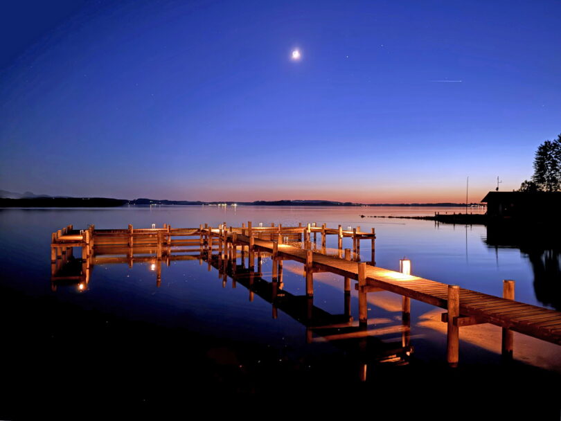 Der Tag neigt sich dem Ende. Absolute Stille legt sich über das Bayerische Meer – den Chiemsee. Das Wasser ruht, der Himmel glüht sanft im letzten Licht des Abends. Ein Moment voller Frieden, Magie und tiefem Atemholen. Wie malerisch sich die Region zeigt – in Farben, die die Seele berühren.