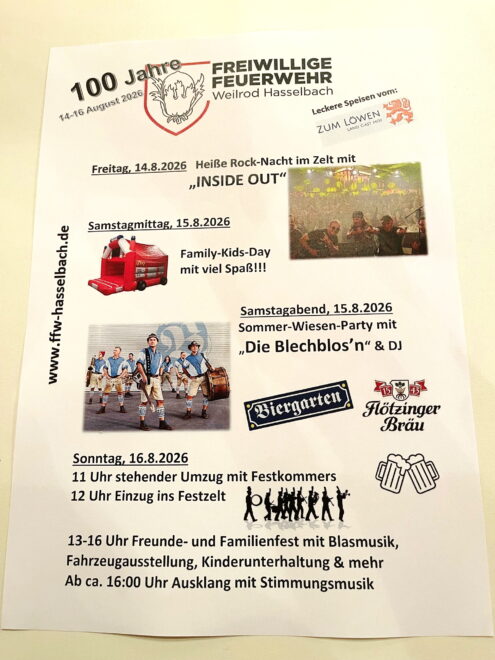Vorboten einer Einladung zum besonderen Hasselbacher Feuerwehrfest ist eine Delegation, die sich für eine Woche zum Urlaub in Prien eingefunden hat. Unter ihnen sind mit Feuerwehr-Ehrenvorsitzenden Stefan Mühle und mit Vorstands-Mitglied Mario Mühle zwei der Hasselbacher Fest-Organisatoren. An einem Abend im Vereinshaus Atzing wurde an die jüngsten Begegnungen in der Gemeinde Weilrod erinnert. So waren die aktiven Dirndl und Buam des GTEV „Daxenwinkler“ Atzing vor zwei Jahren zu einem Auftritt beim „Europa-Tag“ des Hochtaunuskreises und bei der 50-Jahr-Feier der Gemeinde Weilrod eingeladen. Im Vorjahr waren die Atzinger unter anderem bei einer Hochzeitsfeier und im Rahmen des Aufenthaltes auch beim bekannten Vogelpark zu Gast. Ein Besuch des 100jährigen Feuerwehrfestes im kommenden Jahr wird natürlich wieder ins Auge gefasst.