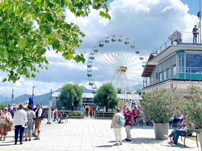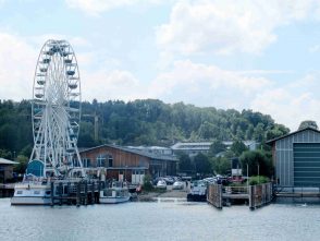 Noch bis einschließlich Montag, 19. Juli dreht sich im Priener Hafen der Chiemsee-Schifffahrt das 38 Meter hohe Riesenrad. Zum zweiten Mal hat dieses riesige Freizeitangebot mit besten Aussichten über Chiemsee, Voralpenland und Priener Gemeinde in Corona-Zeiten Station am Ufer des Bayerischen Meeres gemacht. Nach dem 19. Juli geht das Riesenrad selbst auf Reisen, kehrt aber wieder zurück nach Prien und wird dann ab Mittwoch, 4. August wieder für Einheimische und Urlauber zur Verfügung stehen. Die Betriebszeiten sind täglich ab 10 Uhr und je nach Witterung abends bis ca. 20 Uhr. Eine vorherige Anmeldung ist nicht erforderlich.