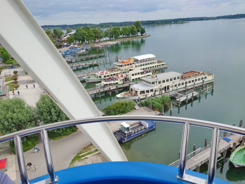 Nur noch am Samstag, 9. Juli und am Sonntag, 10. Juli dreht sich im Hafen der Chiemsee-Schifffahrt in Prien-Stock das heurige Riesenrad. Wolfi Dasch war in diesen Tagen zum dritten Male mit seiner Familie dort – sein Resümee: “Einfach herrlich – liebes Riesenrad, komm bald wieder!”.