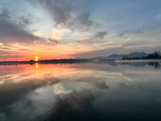 Es wehte zwar ein frischer Wind – aber der Sonnenaufgang war für Frühaufsteher am und auf dem Chiemsee am heutigen Sonntag wieder einmal besonders faszinierend – wie dieser Bilderbogen zeigt.