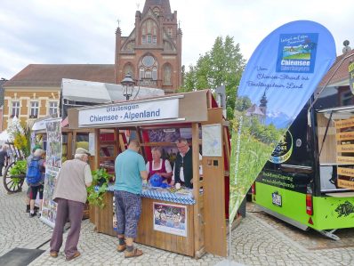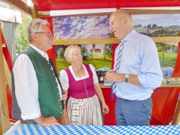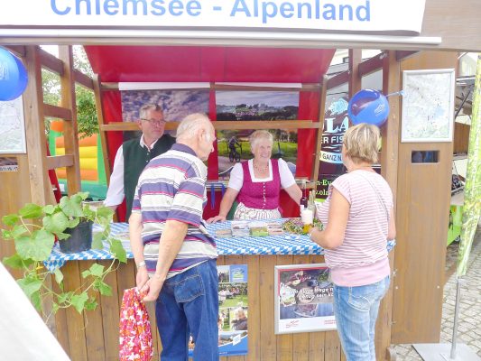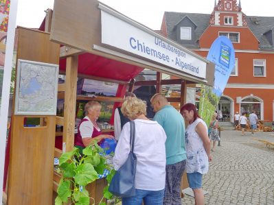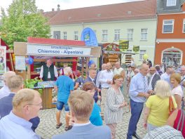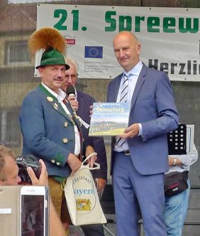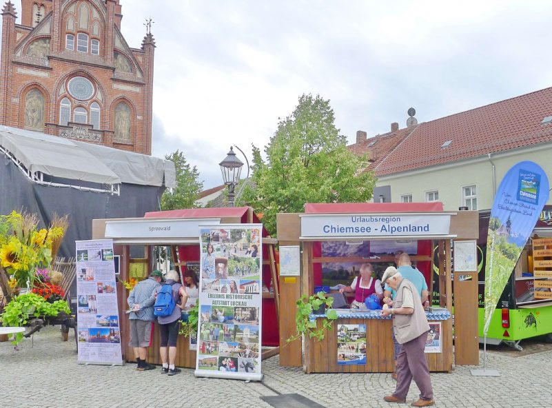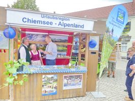 „Wenn man es will, dann war der Berliner Mauerfall vor 30 Jahren der Startschuss für eine außergewöhnliche deutsch-deutsche Tourismus-Partnerschaft“ – mit diesen Worten würdigte zu Beginn des 21. Spreewälder Gurkentages Ministerpräsident Dr. Dietmar Woidke die lange und freundschaftliche Kooperation zwischen den beiden deutschen Premium-Destinationen Spreewald im Osten der Bundesrepublik und Chiemsee in Oberbayern. Wie schon in den bisherigen drei Jahrzehnten wurde auch beim heurigen Spreewälder Gurkentag das gemeinsame Auftreten sicht- und hörbar. Auf Einladung des Spreewaldvereins, der sich der Vermarktung der Spreewälder Gurken und weiterer Produkte verschrieben hat, bekam der Tourismusverband Chiemsee-Alpenland einen Werbestand direkt neben der Hauptbühne des zweitägigen Marktes mit rund 10.000 Besuchern. Besetzt war der Informationsstand von Schorsch und Renate Sachsenhammer vom Jesingerhof in der Gemeinde Amerang. Sie informierten unter anderem über Urlaub auf dem Bauernhof von der Anbietergemeinschaft Chiemsee-Wendelstein, über die Hochtalregion Samerberg sowie über Radeln und Ausflugsziele in der Chiemsee-Alpenland-Region. „Das Rosenheimer Land ist bei uns aufgrund der steten Präsenz und auch wegen der Rosenheim-Cops bestens bekannt“ – so Andreas Traube vom Spreewaldverein. Traube will zusammen mit weiteren Verantwortlichen aus Spreewälder Kommunen und aus den Tourismusstellen des Spreewaldes noch in diesem Jahr einen offiziellen Besuch beim Rosenheimer Bauernherbst vorbereiten. Ein weiteres Zusammentreffen der Chiemseer und Brandenburger ist dann im Januar 2020 bei der nächsten Grünen Woche in Berlin vorgesehen. Dort sollen Bühnenauftritte in der Bayern- und in der Brandenburghalle weitere Bausteine einer starken Partnerschaft werden. Mit dabei sein wird bei den kommenden Begegnungen auch das neue Spreewälder Gurkenpaar Jessica I. und Daniel I. Als musikalische Botschafter Bayerns spielte an beiden Gurkentagen die Chiemgauer Biergartenmusi unter der Leitung von Rudi Piezinger aus Rosenheim.