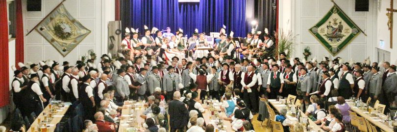 Einen Ohrenschmaus der besonderen Art bot das Chöretreffen des Lechgaues in der Peitinger Schloßberghalle. Die vier Männerchöre aus Böbing, Peiting, Schongau und Steingaden, der Frauenchor aus Rottenbuch sowie die Lechgaukapelle überzeugten mit einem abwechslungsreichen Programm. Vom traditionellen Tölzer Schützenmarsch über „Wochenend und Sonnenschein“ von den Comedian Harmonists bis hin zum Jägerchor aus der Oper „Der Freischütz“ wurde den Zuhörern einiges geboten. Höhepunkt des Abends war der Bozner Bergsteigermarsch, der von allen Sängern gemeinsam mit der Lechgaukapelle vorgetragen wurde. Auch kulinarisch wurden die rund 400 Gäste bestens versorgt. Der gesellige Abend stand unter dem Motto „Törggelen“. So konnte man sich mit Speck, Käse und Südtiroler Weinen bestens versorgen. Auch Lechgauvorstand Franz Multerer und die beiden Volksmusikwartinnen Brigitte Strunz und Mariane Baab waren von dem musikalischen Abend begeistert, und hoben hehrvor, dass der Chorgesang eine Besonderheit des Lechgaues in der bayerischen Trachtenlandschaft ist.