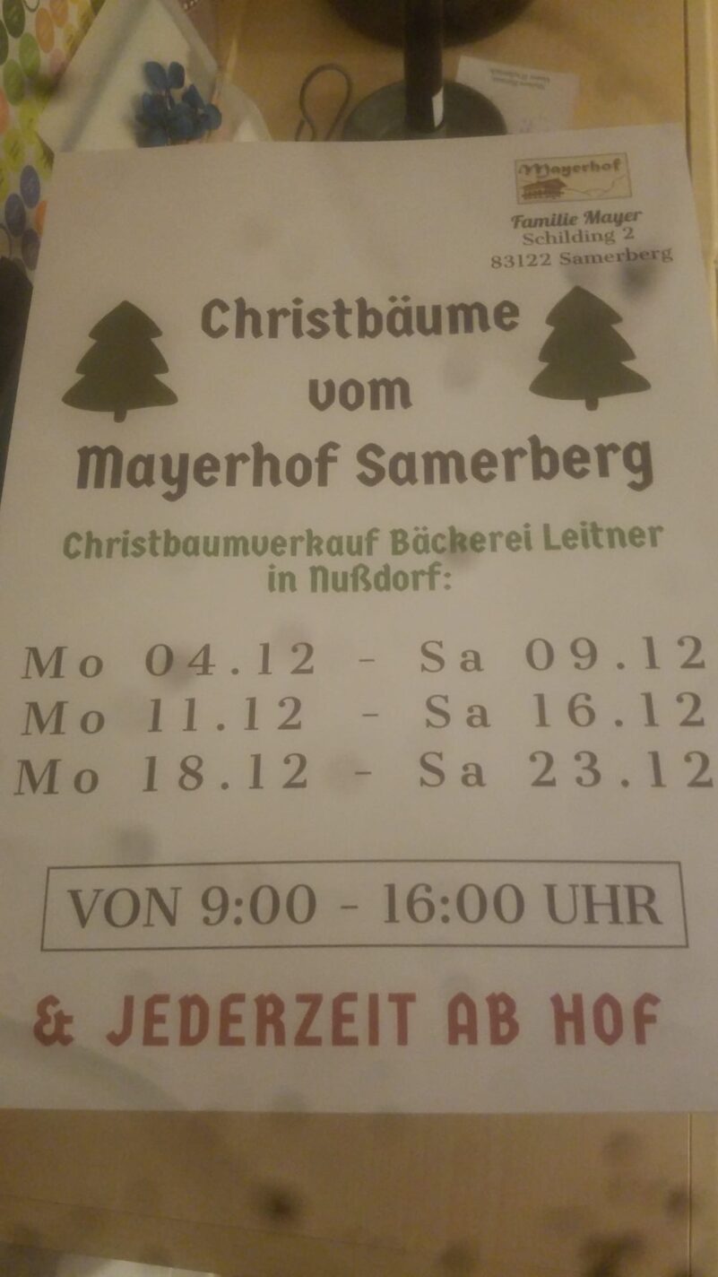 Auch heuer gibt es wieder Christbäume vom Mayerhof Samerberg bei der Bäckerei Leitner in Nussdorf am Inn.
