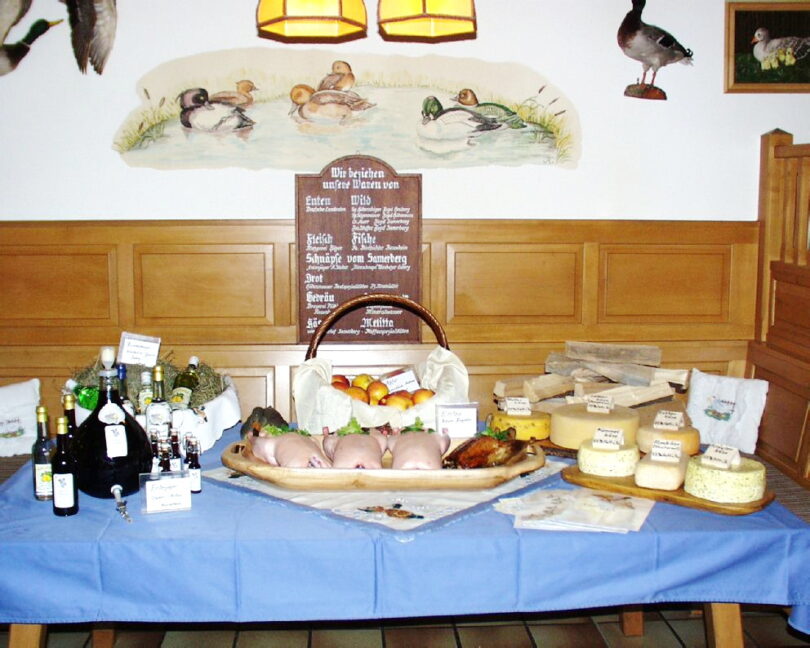 Text: BBV – Archiv-Foto: Hötzelsperger (Präsentation heimischer Erzeugnisse beim Entenwirt auf dem Samerberg)