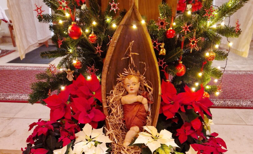 Fotos: Anita Aicher, Pfarrgemeinde Wildenwart – Heilig-Abend-Gottesdienst in Wildenwart mit dem „neuen“ Christkindl, das eine Münchnerin zum Geschenk machte.