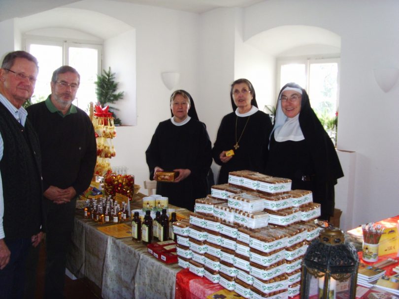 Beim Christkindlmarkt auf der Fraueninsel gibt es einen ganz besonderen Stand und zwar vom Freundeskreis für das Kloster Frauenchiemsee. Dort kann man sich über die Aktivitäten des Vereins oder über eine fördernde Mitgliedschaft erkundigen und man kann sich mit echtem Kloster-Glühwein erwärmen sowie mit klösterlichem Lebkuchen und Marzipan als schmackhaftes Mitbringsel eindecken. Weitere Besonderheiten am Stand bei den sogenannten Katakomben auf der Südseite der Insel sind von einem Honigwachszieher und Lebkuchen mit dem „echten“ Nikolausbild. Der Stand vom Freundeskreis, dessen Bemühungen dem Kloster zugute kommen, ist während der gesamten Christkindlmarkttage geöffnet.