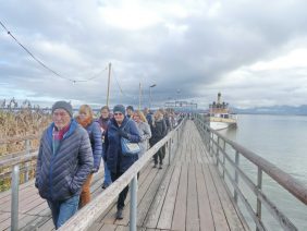 Ein bisschen Regen, ein wenig Föhn aber Schnee nur bei Sicht auf die nahen Chiemgauer Berge – das war am ersten Advent-Wochenende der Wetterbericht zum heurigen Christkindlmarkt-Auftakt auf der Fraueninsel. Dorthin machten sich überaus viele Einheimische sowie Gäste aus aller Welt auf den Weg, nicht wenige nutzten die öffentlichen Verkehrsmittel nach Prien und vom dortigen Bahnhof die dampfende Chiemsee-Bahn. Rege eingesetzt wurden von Prien-Stock und von Gstadt aus die Schiffe für die Überfahrt. Auf der Insel erwartete das Publikum eine Vielzahl an Verkaufs- und Bewirtungsständen sowie ein reichhaltiges kulturelles Programm innerhalb und ausserhalb des Münsters. Der Christkindlmarkt auf Frauenchiemsee, der von der Priener Marketing GmbH organisiert wird, hat nur noch am zweiten Wochenende geöffnet, am Freitag, 7. Dezember von 14 Uhr bis 19 Uhr sowie am Samstag und Sonntag von 12 Uhr bis 19 Uhr. Nähere Informationen gibt es unter www.christkindlmarkt-fraueninsel.de.