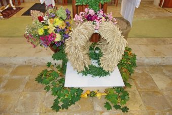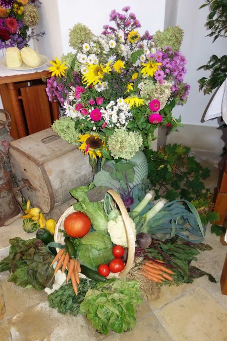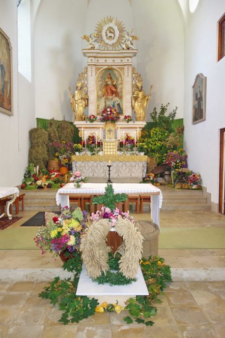 “Da muss man weit pilgern, um so einen schönen Erntedank-Schmuck in einer Kirche zu finden” – diese Bewertung eines Kirchgängers am Erntedank-Sonntag in der Pfarrkirche “Christkönig” von Wildenwart bezog sich auf den gesamten Herbst- und Ernte-Schmuck in der Kirche. Georg Kronast als eifriger Kirchendiener hat sich da hauptverantwortlich verdient gemacht. Da die vielen Details im Rahmen eines Gottesdienstbesuchs nicht allesamt wahrgenommen werden konnten, zeigen wir einen Teil des Erntedank-Schmuckes mit diesen Bildern.