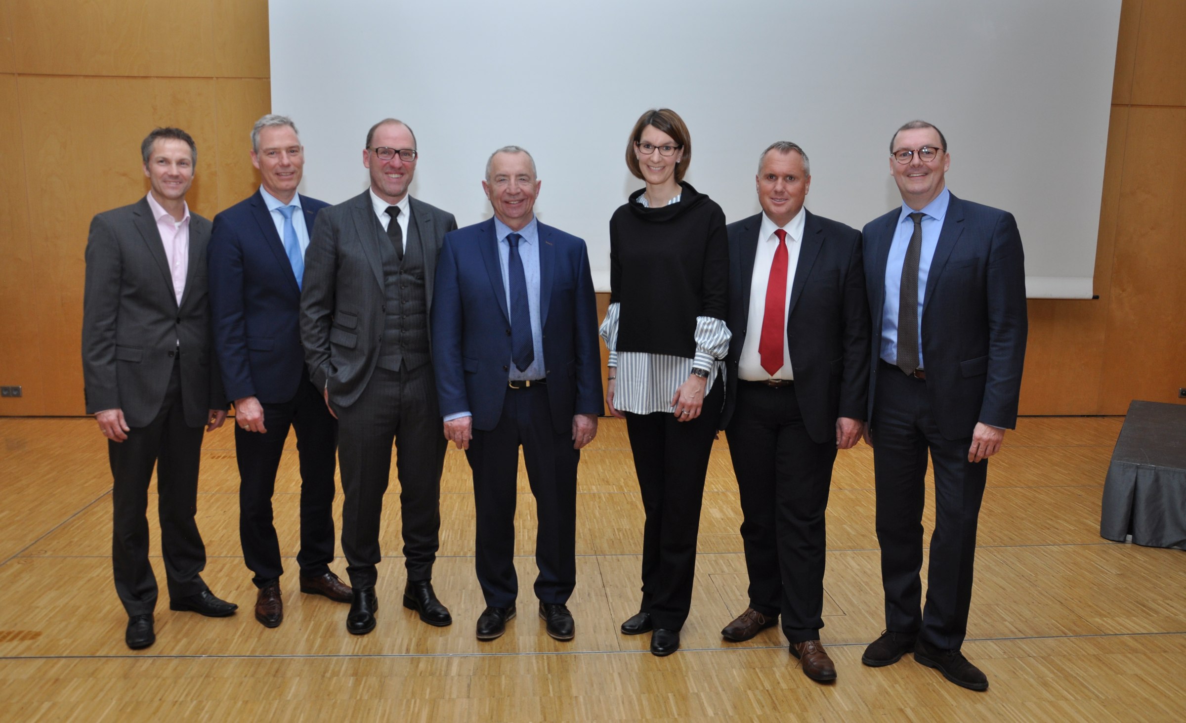 City-Management (Vorstand): Robin Nolasco (Stadtplanungsamt), Thomas Treibenreif (Juwelier Krumtünger), Stefan Grandauer (GFH Immobilien), Helmut Kolb (Kolb & Semmelmayr Anwaltskanzlei), Sabrina Obermoser (City-Management Rosenheim e.V.), Rainer Pastätter (RPPV GmbH), Paul Adlmaier (Adlmaier for man) (Fotograf: Martin Rumberger)