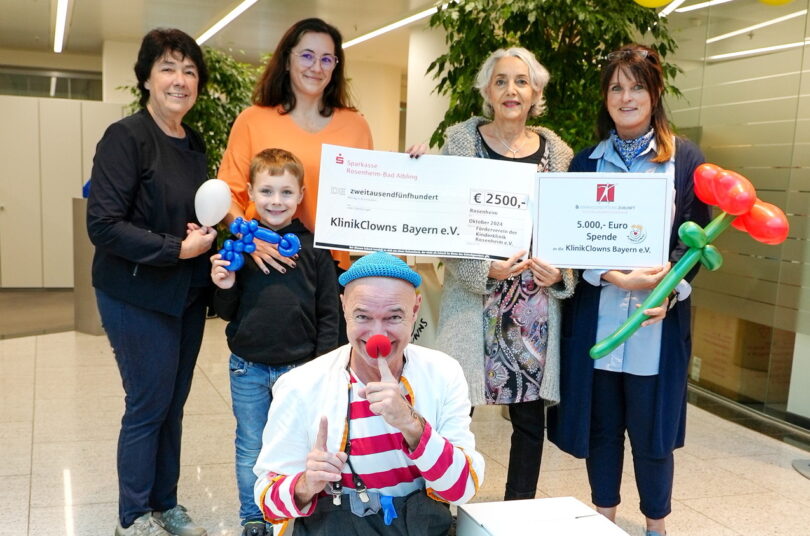 Gemeinsam schenken die Sparkassenstiftung Zukunft für den Landkreis Rosenheim und der Förderverein der Kinderklinik Rosenheim e.V. kranken Kindern Freude mit den KlinikClowns
