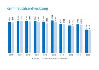 Corona-Lockdown und Kontaktbeschränkungen haben auch eine positive Seite: Im Jahr 2020 wurden in der Stadt Rosenheim insgesamt nur noch 4.211 Straftaten (2019: 5.163) in der Polizeilichen Kriminalstatistik erfasst. Im Vergleich zum Vorjahr bedeutet dies einen Rückgang von 952 Straftaten bzw. 18,4 Prozent. Diese Zahlen gab Polizeipräsident Robert Kopp beim alljährlichen Sicherheitsgespräch von Polizeipräsidium und Stadt Rosenheim am Donnerstag, 08.04.2021, bekannt.