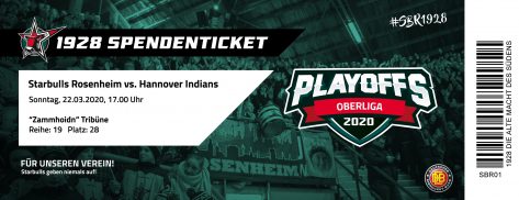 Um den durch die Einstellung des kompletten Spielbetriebs im deutschen Eishockey entstandenen Schaden abzumildern, haben die Starbulls ein Maßnahmenpaket geschnürt. Als erste dieser Maßnahmen gibt es dabei ab sofort für alle Grün-Weißen Fans die Möglichkeit, über ein virtuelles „1928 Spendenticket“ den Verein zu unterstützen.