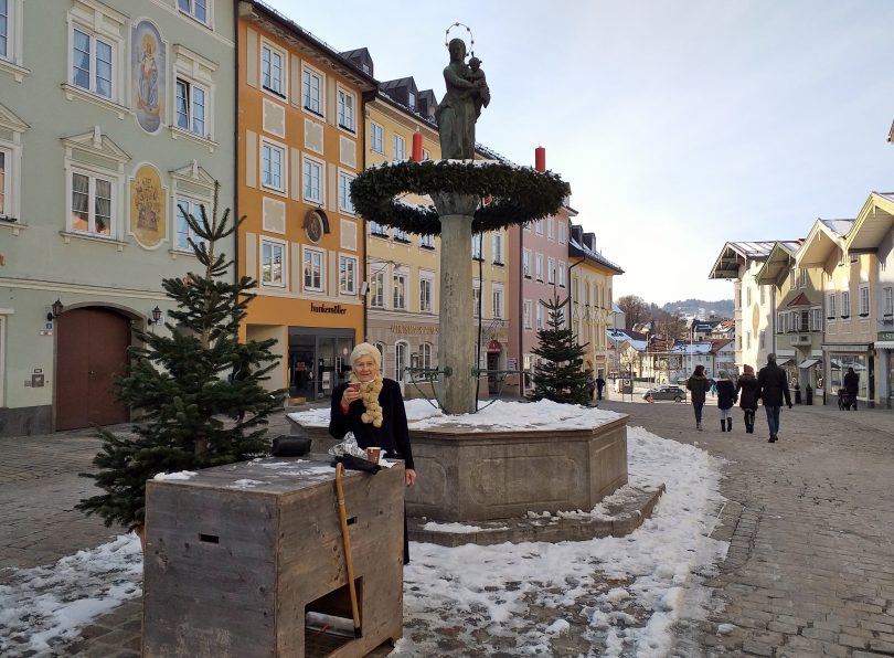 Zuvor schon hatten Kommunalpolitiker in einigen bergnahen, seenreichen, also besuchenswerten Landkreisen ihre imaginären Grenzen quasi dicht gemacht, indem sie Ausflügler aus dem Großraum München durch aggressive Aufschriften („Verpisst euch“), markige Aussprüche von Mandatsträgern („dahoam is aa schee“), Sperre oder Verteuerung von Parkplätzen und ähnliche eigenmächtige Maßnahmen immer mehr vergraulten. Münchner, so meldet der Münchner Merkur, seien geradezu „verhasst“ im Alpenvorland, das obendrein durch heftigen Schneefall „ausgebremst“ wird, wie due Abendzeitung warnt. Mancherorts mache man sich Sorgen um die „Tourismusgesinnung“, stellte die Süddeutsche Zeitung fest. Die jedenfalls gespannte Lage hat die grüne Münchner Bürgermeisterin Karin Habenschaden dieser Tage zur Schadensbegrenzung gedrängt. In digitalen Gesprächen mit Bürgermeistern einiger Ausflugsgemeinden bemühte sie sich um einen Modus vivendi. Wie ein erträgliches Zusammenleben unter Pandemie-Bedingungen genau aussehen soll, blieb offen. Offenbar sollen Apelle und Aufkläriung in Stadt und Land vorerst genügen. Zum Glück geben sich nicht alle Voralpenbewohner so ungastlich, respektive ängstlich wie manche Leute am Tegernsee, Schliersee, Spitzingsee und am Fuße der Zugspitze. Die noch geltende Ausgangsfreiheit nutzend, fuhr ich mit Alwine per Bahn eben noch mal nach Bad Tölz. Und siehe: Dort wurde uns vermummten Spaziergängern sogar ein freundliches „Grüß Gott“ zugerufen. Freilich bot die sonst so herrliche und jetzt menschenleere Marktstraße nicht gerade ein Bild urbanen Lebens. Die beim Bäcker eingekaufte Brotzeit mussten wir am Marktbrunnen stehend verzehren. Man sollte halt doch den Virologen und Politikern folgen und zu Hause bleiben. Bis bessere Zeiten kommen.