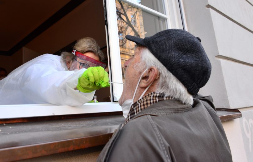 Foto: Thomas Stankiewitz beim Corona-Test von Karl Stankiewitz