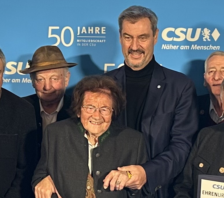 98jährige Rosenheimerin für 50 Jahre CSU von Bayerns Ministerpräsidenten geehrt – Einen eigenen Ehrenabend gab es bei der Christlich Sozialen Union (CSU) in München als dessen Vorsitzender und Bayerischer Ministerpräsident Dr. Markus Söder besonders langjährige Mitglieder ehrte. Zu diesen gehörte auch die Rosenheimerin Franziska Mühlthaler vom CSU-Kreisverband Rosenheim.