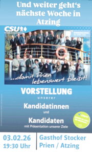 Der CSU-Ortsverband Prien stellt seine Kandidatinnen und Kandidaten für die kommenden...