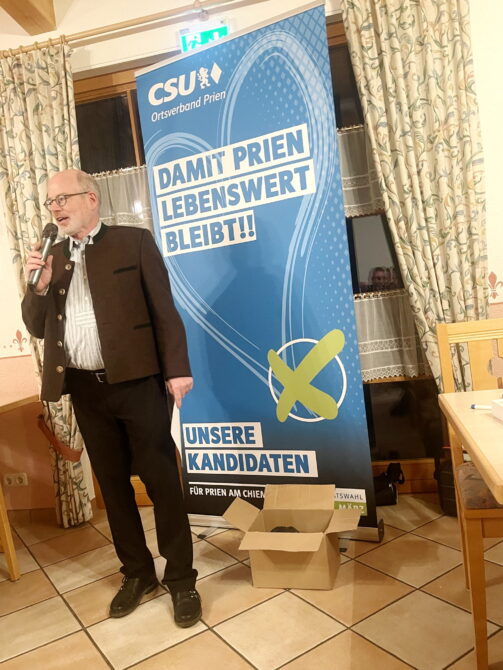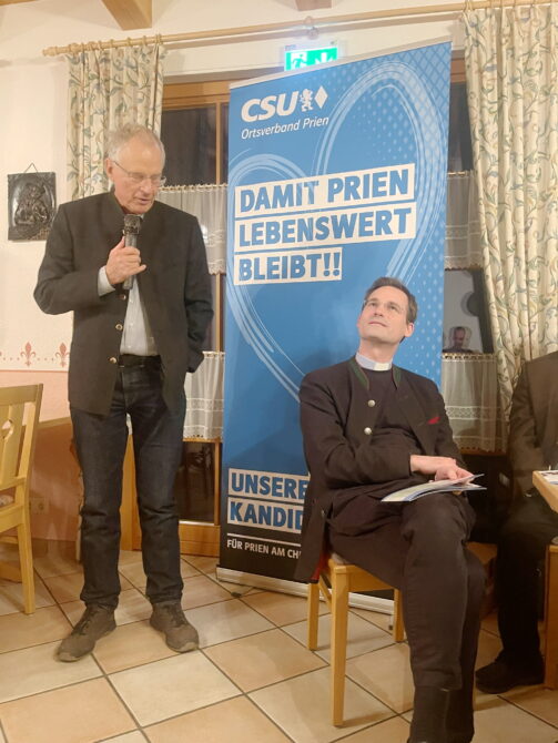 Kernpunkt der Veranstaltung war die Vorstellung der insgesamt 24 Kandidaten der Christlich-Sozialen-Union Prien mitsamt zwei Ersatzkandidaten. Bei den Vorstellungen der Kandidaten kamen deren unterschiedlichen Berufe und das verschiedene Alter (von 22 Jahren bis 72 Jahren) ebenso zur Sprache wie deren gemeinsames Ziel, Prien lebenswert zu erhalten. Gemeinschaft in der Gesellschaft, das Vereinsleben, die Förderung der Familien, bezahlbarer Wohnraum sowie Engagement in der Kirche waren immer wieder zu hören ganz nach dem Motto: „Politik beginnt dort, wo Verantwortungen übernommen und Lösungen gefunden werden“. Die Kandidatenvorstellung klang mit einem gemütlichen Beisammensein und einem regen Austausch zu kommunalpolitischen Themen in Prien im Beisein von Priens Pfarrer Philipp Werner aus. Die Kommunalwahlen in Bayern und in Prien finden am Sonntag, 8. März statt.