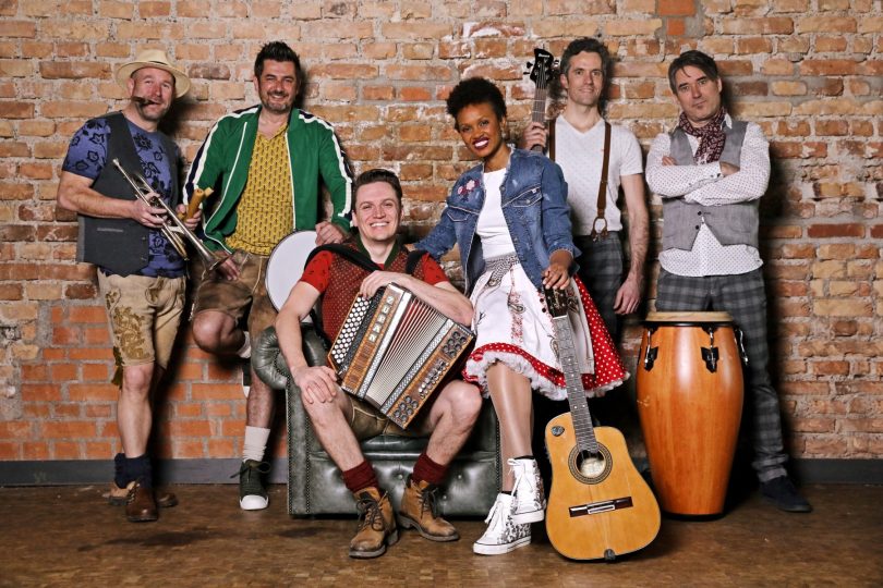 Der Chiemgauer Musiker Leo Meixner, ehemaliger Sänger der deutschlandweit gefeierten „CubaBoarischen“, und die kubanische Vollblutmusikerin und Sängerin Yinet Rojas Cardona lassen im Duo ihre Seelen verschmelzen und präsentieren einen sprudelnden musikalischen Cocktail aus kubanischem Rum, globalem Pop und Bavaria. Marinus Wagner und Philipp Treichl blasen dazu virtuos einen bayerisch-südamerikanischen Marsch, Boris von Johnson heizt mit flotten Latinrhythmen an der Percussion die Stimmung an, Csaba Schmitz lässt seine Drumsticks ebenso dazu tanzen wie Peter Rutz seine Händen auf dem Piano, während der so coole wie erdig-alpine Groove von Funk- und Soulbassist Bernhard Lackner direkt in die Hüfte geht. Und natürlich darf an diesem Abend auch ihr neuster Song nicht fehlen mit dem die Band eine Herzensbotschaft an ihr Publikum richtet: „Dahoam is überoi, aufm Gipfel oder drunt im Tal, von Kuba bis nach Tirol, in Miami, in Rio, am Panamakanal …“.