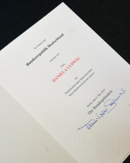 Die Rosenheimer CSU-Bundestagsabgeordnete hat von Bundesinnenminister Alexander Dobrindt (CSU) ihre Ernennungsurkunde zur Parlamentarischen Staatssekretärin beim Bundesminister des Innern erhalten. Dazu erklärt Daniela Ludwig: