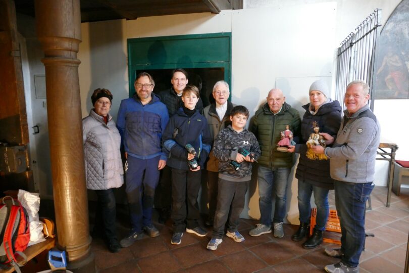 Liebevoll und mit viel Gespür für jedes Detail bauen Klaus Obermüller und Hans Grutsch sie jedes Jahr auf und sorgen auch dafür, dass von Jahr zu Jahr die Szenen abwechslungsreich gestaltet werden. Auch in diesem Jahr begannen die beiden,  unterstützt von ihren Familien, Mitte November mit dem Aufbau. Dabei wirkten auch die Enkel bereits mit und es ist zu hoffen, dass diese Tradition in der Zukunft fortgeführt wird. Grund genug für Pfarradministrator Gottfried Grengel im Namen der Pfarrgemeinde ein herzliches Vergelt`s Gott zu sagen für ihren jahrzehntelangen Dienst.