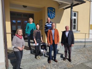 (v.l.n.r.): Margit Böhm (Untere Naturschutzbehörde), Katharina Weinberger (Kiebitzbeauftragte), die Landwirte Theresa Plank und Karl Stettner, Breitbrunns Büprgermeister Anton Baumgartner und Eggstätts Bürgermeister Christian Glas.