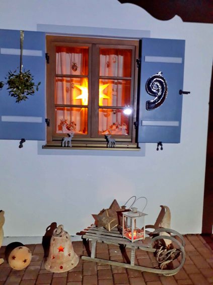 Fotos: Sylvia Steiner, Vorsitzende vom Verein Weihnachtsmarkt Achenmühle – Adventfenster der Familie Purainer in Hetzenbichl