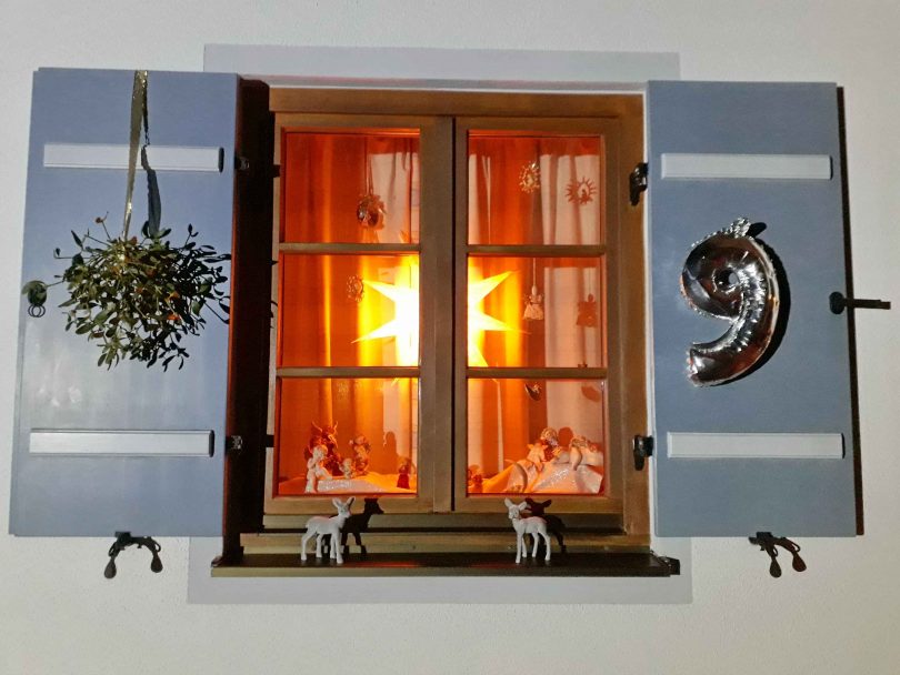 Das inzwischen 9. Fenster, das im Rahmen des Achenmühler Weihnachtsmarktes geöffnet wurde, war bei der Familie Purainer in Hetzenbichl bei Höhenmoos ganz nach dem Motto: “Auch hier sind die Engel angekommen, um den Menschen zu zeigen, dass sie für sie da sind”. Bis 24. Dezember wird täglich um 19 Uhr ein weiteres Fenster geöffnet, das Vorbeikommenden Anlass für Betrachtung und Innehalten geben soll.