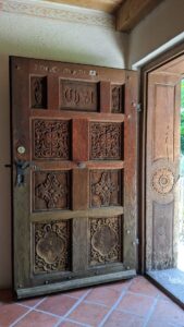 Haustüre mit ihrer feinen Reliefschnitzerei