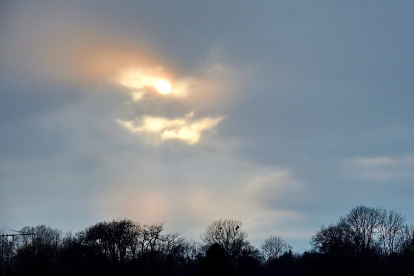 Sie schaugt ganz vadattert zwischn de Wolkn raus: