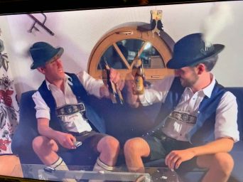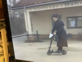 „Seit dem zweiten Lockdown haben wir keine Präsenzproben mehr halten können, deshalb danke ich für die Idee des Online-Festes, gleichwohl ich mich jetzt schon von den zu erwartenden Aussagen und Inhalten distanzieren möchte“ – mit diesen Begrüßungsworten machte der Musik-Vorstand Stefan Hackenberg einen Fingerzeig auf Bruder Johannes, nach dessen Idee das Video-Projekt durch Kameramann Severin Schwarz umgesetzt wurde. Aber so angriffslustig wie in den letzten Nicht-Corona-Jahren im König-Ludwig-Saal war Johannes Dreikorn als Fastenprediger eh nicht. So suchte er nicht persönliche Schwächen, sondern machte sich –nachdem er „von Rom kommend“, dem Zug am Priener Bahnhof entstieg auf den Weg durch Prien. Zu Hilfe nahm er dabei den ersten Priener E-Scooter-Verleih und schon auf dem ersten Weg zum König-Ludwig-Saal musste er Verkehrsbeschränkungen an der Seestraße wegen der Chiemsee-Bahn-Gleis-Querungen in Kauf nehmen und er sagte: „Einerseits wollen die Priener einen Radschnellweg bzw. einen Transrapid für Radfahrer, andererseits wird einem beim Heimfahren die vom Regerl Peter geholte Milch sauer, wenn man nur ganz langsam fahren darf“. Endlich am König-Ludwig-Saal angekommen, wartete auf ihn die nächste Überraschung: die eigentlich für Mai 2020 geplante Fertigstellung des Umbaues vom vormaligen Großen Kursaal lässt auf sich warten. Mit den dort mehr oder weniger erfolglos putzenden Ratschkathln Rosi Hell und Brigitte Sperger schätzte er, dass der „Griechische Tempel“ voraussichtlich zum Starkbierfest 2024 fertig werden wird. Tröstend zur architektonischen Spitze ergänzten sie: „Wenigstens wird es hier nicht so ein Hühnerverschlag wie im Alten Rathaus“.
