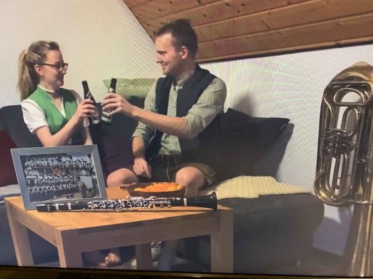 Johannes Dreikorn und Stefan Hackenberg gestanden nach erfolgtem Erfolg, dass der Aufwand größer war als gedacht. „Aber es hat sich gelohnt, 200 Leute konnten mit passenden Brotzeit- und Getränke-Ausstattungen versorgt werden, mit Severin Schwarz als Kameramann haben wir einen Volltreffer gelandet und der Erlös dank einiger Sponsoren vom heutigen Abend kommt unserer Nachwuchsarbeit und den derzeitigen Distanzproben zugute. Hoffen wir, dass es bald wieder Original Priener Blasmusik gibt, zum Beispiel zum Fronleichnam in Prien, zum Gautrachtenfest im Chiemgau oder zur Grünen Woche in Berlin“. Weitere Spenden werden gerne noch angenommen, möglich ist dies auf der Internetseite www.blaskapelle-prien.de oder auf Youtube (paypal), dort kann das Online-Starkbierfest auch noch angeschaut werden.
