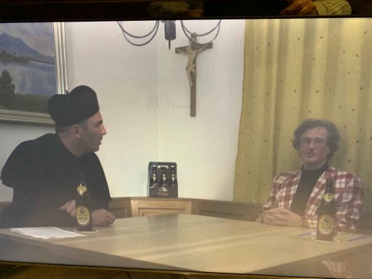 Bürgermeister Andi Friedrich jetzt nicht mehr mit ohne Hut – Gleich zwei Film-Auftritte hatte Bürgermeister Andi Friedrich bei seinem ersten Starkbierfest-Auftritt. Zu Beginn zapfte er mit Bräu Maximilian Sailer vom Hofbräuhaus Traunstein einen eigens eingebrauten Doppelbock mit drei Schlägen an, dabei hielt sich sein sein Bierverlust in Grenzen. Und dann machte das Gemeinde-Oberhaupt noch Gebrauch von den Bestell-, Probier- und Abhol-Möglichkeiten der Priener Geschäftsleute. Die Priener Ratschkathln waren es wieder einmal, die einen neu gewählten Bürgermeister zur Priener Hutmacherin Monika Voggenauer schickten, denn es schickt sich nicht, wenn der Bürgermeister mit ohne Hut ist – wie zuletzt bei der König-Ludwig-Feier in Stock. „Überredet, angemeldet, Hut probiert und gepasst“ – so der nunmehr gut behütete Bürgermeister, der nach dem Ende der Online-Veranstaltung sagte: „Hut ab vor Bruder Johannes, vor der Blaskapelle und allen Beteiligten, das war in diesen Zeiten einmal ein ganz anderer, ein schöner Abend“. Zu den Wunden, in die Bruder Johannes seine Finger legte, sagte er: „Es wird wohl nicht bis 2024 dauern, bis der König-Ludwig-Saal wieder geöffnet wird, nach aktuellem Stand können wir hoffen, dass bereits im Mai mit dem Chiemgau-Orchester eine erste Veranstaltung sein wird“. Auch Priens Pfarrer Klaus Hofstetter, der sich –mit genügendem Abstand – das Starkbier-Ereignis zusammen mit dem Bürgermeister anschaute, resümierte dankbar: „Echt pfundig, ein scheena Aufnacht und wegen der Leviten hat der Bürgermeister keinen Seelsorger gebraucht, denn der Prediger war behutsam und doch tiefsinnig“. Eine weitere Rückmeldung nach Ende des Festes kam aus Kirchheim bei München. Josef Hornburger, seit Jahren ein Förderer und Freund der Priener Blaskapelle meldete sich mit: „Gratulation, Respekt und Danke für die Alltags-Abwechslung“. Sogar in Hessen im befreundeten Hasselbach im Hochtaunus wurde das virtuelle Starkbierfest genossen, Stefan Mühle meldete sich von dort: „Das war gescheit bayerisch und was für´s Herz und Gemüt. Danke und Gruß nach Bayern und Prien“. Und Alyne Cardon aus Graulhet schreibt noch in der Nacht: „Was für eine Freude, wieder in der Atmosphäre von PRIEN zu sein! Bis bald zum 50-jährigen Bestehen der Städtepartnerschaft!“.