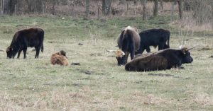 Ganzjahresbeweidung auf Niedermoor und mineralischen Randbereichen; „Robust-Rinderrassen“ – hier Heckrinder bei Sandizell in einem Wasserrückhalteraum –