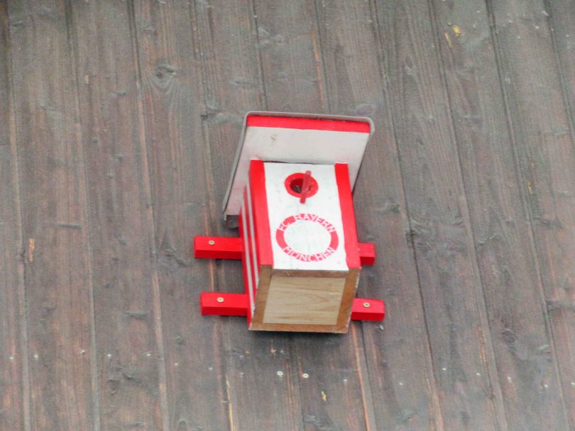 Fans und Fan-Artikel für den Bayerischen Rekordmeister FC Bayern München gibt es weltweit – aber eventuell einmalig in der FC-Bayern-Welt ist dieses Vogelhaus beim FC-Bayern-Fan-Club Gaishacken Power, gegründet 1993. Nachdem das Clubheim derzeit wegen Corona geschlossen ist, pfeifen wohl die Vögel die Ergebnisse ins Land, aktuell zuletzt hieß es zwitschernd und in Versform: “Schalke 04 – FC Bayern 0 zu 4!”. Wünschen wir uns, dass bald schon die Corona-Einschränkungs-Sorgen davonfliegen…