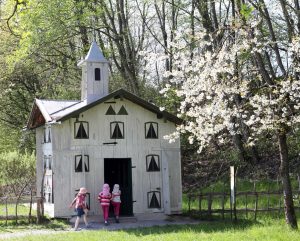Auf ins Bienenhaus aus Sensau! Buben und Mädchen können am Bienentag aktiv das Leben im Stock entdecken. © Bezirk Oberbayern, Archiv BHM Amerang, Aufnahme: Gerhard Nixdorf.