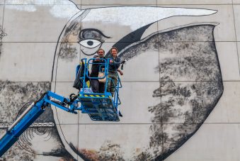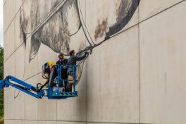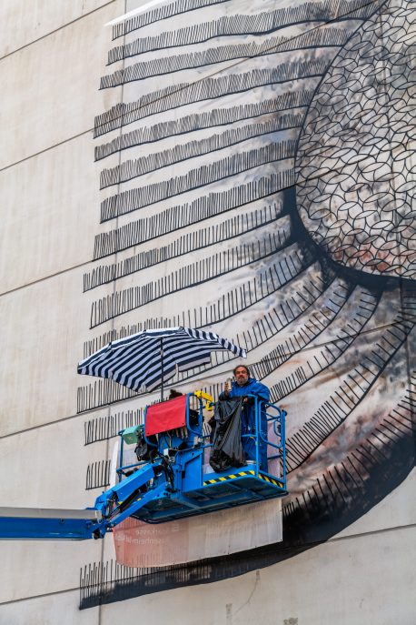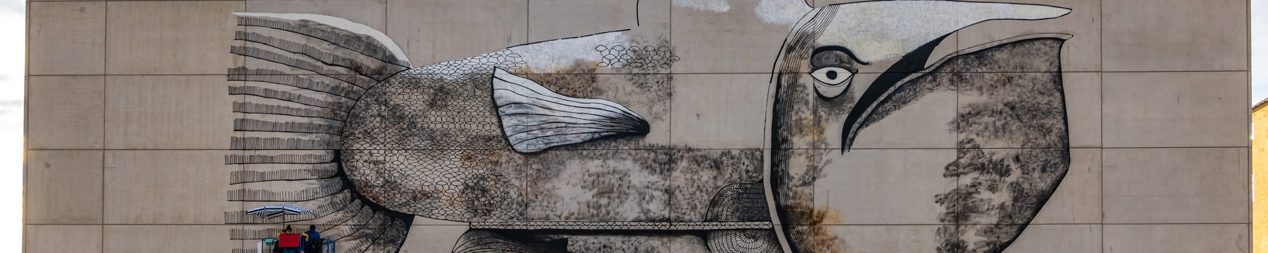 Die triste Betonwand des Parkhauses P12 Bahnhof Nord wird von den Street Art Künstlern Christina Laube und Mehrdad Zaeri in ein Kunstwerk verwandelt.