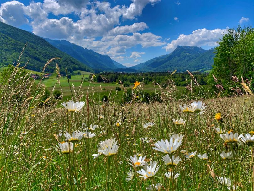 Ein perfektes Wetter an den Pfingsttagen hat unzählige Menschen regelrecht aufgefordert in der Natur unterwegs zu sein. Doch wie hier in Aschau i.Chiemgau gibt es immer wieder Fleckchen die einen zum Verschnaufen und Genießen in der Ruhe einladen. Eine leichte Brise frischer Wind kitzelt über die Nasenspitze und die bunten Wiesen geziert durch den weißen Farbtupfer der Margeriten zeichnen einen Kontrast zu der Wolken-Pracht am Horizont. Schöner konnten die Festtage nicht sein, zumindest bei so einem Blick wie hier am Pfingstmontag ins Priental.