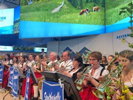 Auf der Grünen Woche 2020 spielten am vergangenen Freitag die Mitterteicher Stadtkapelle unter der Leitung von Oliver Lipfert zwei Stunden bayerisch/böhmische Blasmusik. Im bestens gefüllten Biergarten der Bayernhalle hatten die über 30 Musiker viel Freude bei Ihren beeindruckenden Auftritt. Bei der Gelegenheit konnte der Vorsitzende der Ikom Stiftland Roland Grillmeier mit den beiden Bürgermeistern Bernd Sommer und Herbert Bauer dem Publikum unsere „wunderbare Urlaubsregion“ kurz vorstellen. Zum ersten Mal war auch die „Weißbier Resi“ Martina Bleistein mit Michael Hösl von der Privatbrauerei Hösl dabei. Es wurden auch Kostproben der Bäckerei Rosner und der Privatbrauerei Hösl unter den zahlreichen Gästen verteilt. Die Kapelle spielte noch Standkonzerte am Brandenburger Tor und im Europa Center. Die Musiker hatten viel Freude bei den Auftritten. Ermöglicht wurde dieser hervorragende musikalische Auftritt von Toni Hötzelsperger der das Bühnenprogramm in der Bayernhalle für das bayerische Landwirtschaftsministerium organisiert.
