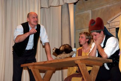 Fotos: Hötzelsperger – Eindrücke von den Theateraufführungen beim Trachtenverein Hochries-Samerbert, u.a. Peter Wiesholzer, der 40 Jahre mitspielte und 25 Jahre Theaterleiter war.