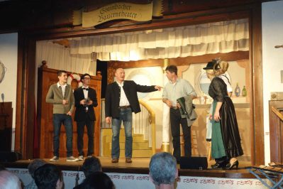 Anfangs, um die vorletzte Jahrhundertwende, wurden in Grainbach vor allem Einakter zur Weihnachtszeit oder bei Christbaumversteigerungen gespielt. Später kamen dann Dreiakter dazu. Einen regen Aufschwung nahm das Theaterspiel nach dem Zweiten Weltkrieg. So lässt sich in der Chronik des Vereins (120 Jahre von 1896 bis 2016 – erhältlich bei der Vorstandschaft) ein Eintrag finden, demzufolge im Jahr 1948 beim Stück „Der Gankerl von Berchtesgaden“ rund 500 Besucher gezählt werden konnten. Dieser Erfolg beflügelte und es folgte im darauffolgenden Jahr das Stück „Jennerweins Ende“ mit Zusatzaufführungen sogar in Frasdorf, Aschau und München. In den fünfziger Jahren wurde es wieder etwas stiller um das Theater. Dieser Zeit schlossen sich wieder wackere Auftritte, aber auch Schicksalsschläge an. Der Neubau der Bühne im Jahr 1986 sorgte erneut für einen Aufschwung und noch mehr florierte der Zuspruch ab 1992 als Peter Wiesholzer („Käser-Peter“) die Theaterleitung für dann 25 Jahre übernahm. Fünf Stücke (u.a. „Der Aufschwung“, die „Meereskrise“ oder „Die Energieblende“) schrieb Wiesholzer als Regisseur und Hauptdarsteller selbst. Ihm folgte für zwei Jahre Georg Brandmaier als Theaterleiter, zuletzt war Robert Dörper um eine Stückauswahl bemüht –wegen Corona jedoch bislang vergeblich. Trachtenvorstand Peter Sattlberger hofft natürlich, dass sich der Theatervorhang bald wieder öffnet, wenn er sagt: „Bei Standard-Stückl sind rund 20 Leute vor, auf und hinter der Bühne ehrenamtlich tätig, bei größeren Stücken sind es bis zu 40 Frauen und Männer – ihnen und uns wünschen wir, dass die Theaterfreude über die theaterfreien Zeiten hinaus anhält“.