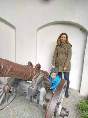 Mächtig zeigt sich die Burg Hohenaschau im Priental und gerne zeigt sich diese den Besuchern. Besonders gerne kommen Familien, um sich nach einem ganz kurzen Aufstieg von der reichen Geschichte selbst zu überzeugen. Zu den praktischen Überzeugern gehören auch Familien und Kindern. Wenn sich dann – wie dieser kleine Luggi aus Prien- dann die Kleinen an den großen Ausstellungsstücken und sogar an der Kanone versuchen, dann fällt unschwer das ungleiche Duell “David gegen Goliath” ein. Zumindest wurde diesesmal Goliath nicht Sieger.