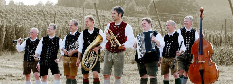 Die Dellnhauser Musikanten gehören zur bayerischen Tradition wie der Hopfen zur Hallertau und das seit mehr als 70 Jahren. Unverändert frisch klingt die Musik des siebenköpfigen Ensembles um Michael Eberwein, der in den 80er Jahren die Leitung von seinem Vater übernommen hat. Ihren Erfolg verdanken sie vor allem dem perfekten und eigenständigen Musizierstil mit dem sie ihr schier unerschöpfliches Repertoire an selbst komponierten und arrangierten Stücken zum Besten geben. Mit unübersehbarer Spielfreude und der Vielfalt ihrer Musik begeistern sie stets ihr Publikum, egal welchen Alters. Es sind keine Vorkenntnisse nötig gemäß des Mottos “Volkstanz ist, wenn jeder tanzt”.