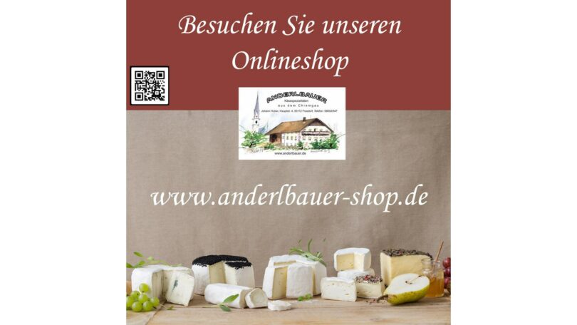 Die Bio-Käserei Anderlbauer aus Frasdorf lädt herzlich dazu ein, ihren neuen Onlineshop zu besuchen. Besucher finden dort eine breite Auswahl an Käsespezialitäten aus dem Chiemgau.